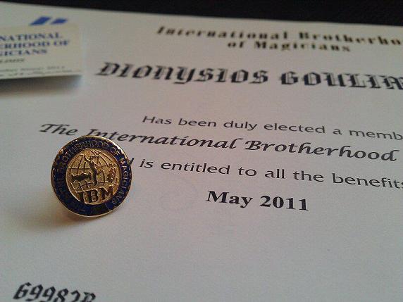 - Μέλος της IBM (International Brotherhood of Magicians) και μέλος του Ελληνικού παραρτήματος της , Athens Ring 338.