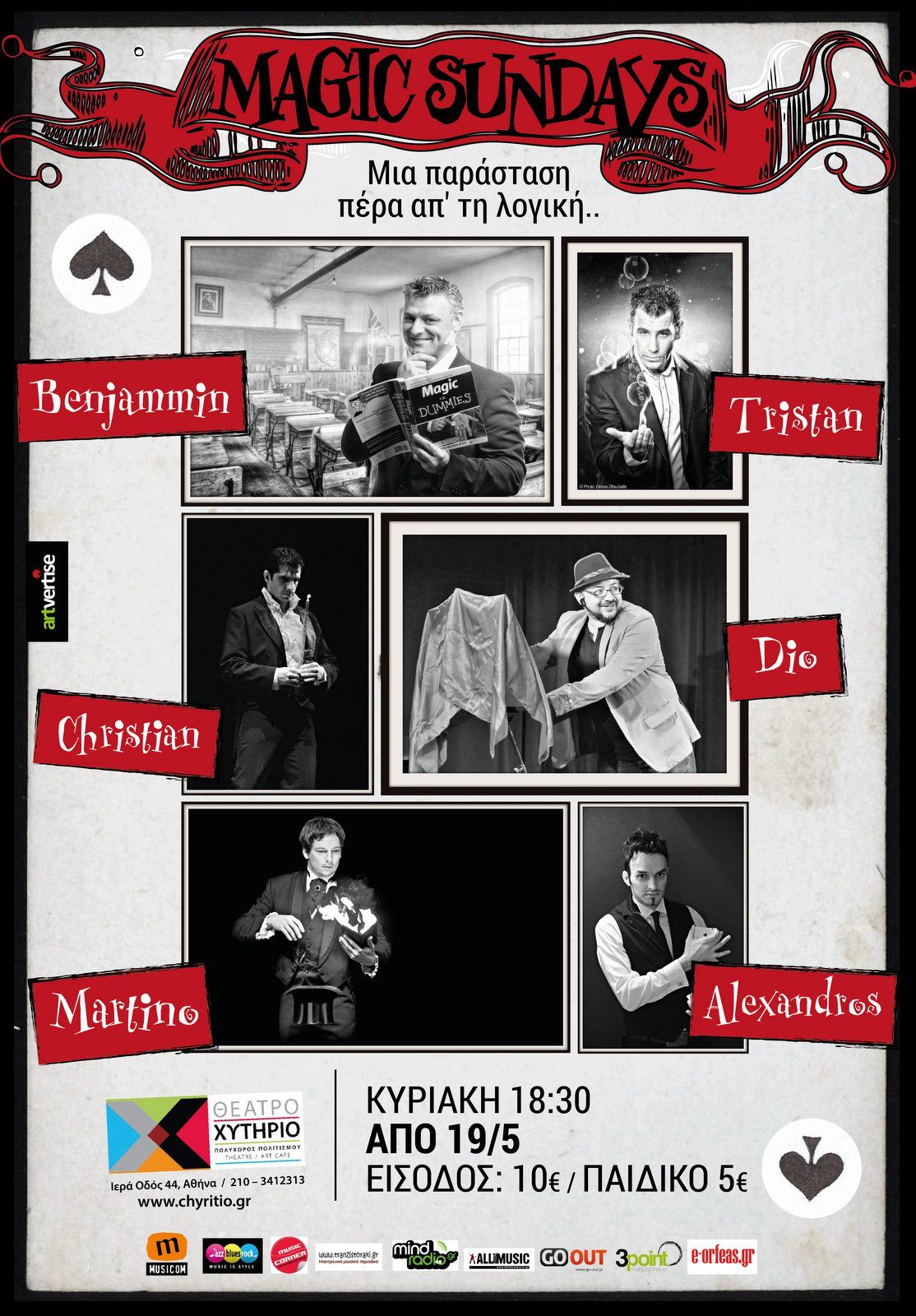 παίρνει μέρος στην παράσταση MAGIC SUNDAYS στο θέατρο ΧΥΤΗΡΙΟ THEATRE & ART CAFÉ , μια παράσταση που σκηνοθετεί και γράφει το σενάριο της , μια παράσταση μαζι με τους καλύτερους Έλληνες ταχυδακτυλουργούς , Benjammin,Tristan,Christian,Martino,Alexandros !!Μια παράσταση που πήρε εκπληκτικές κριτικές !! "Μία ξεχωριστή και ανατρεπτική παράσταση, με Μυστήριο, γέλιο , συγκίνηση και έκπληξη, συνθέτουν ένα πρωτόγνωρο ταξίδι στην απόλυτη ψυχαγωγία, μέσα απ’ την τέχνη της μαγείας!" Πηγή: www.lifo.gr